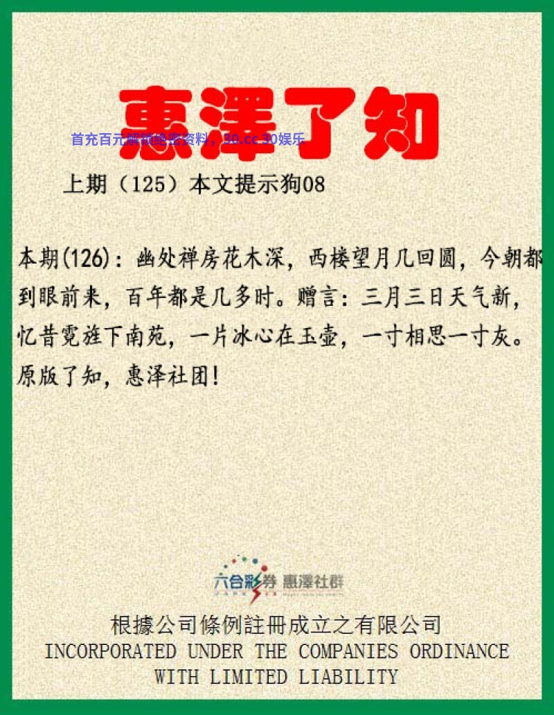 【惠泽了知】126期:幽处禅房花木深,西楼望月几回圆,望月解夜肖鼠牛虎鸡狗猪。今朝都到眼前来,百年都是几多时。赠言:三月三日天气新,忆昔霓旌下南苑,一片冰心在玉壶,一寸相思一寸灰。